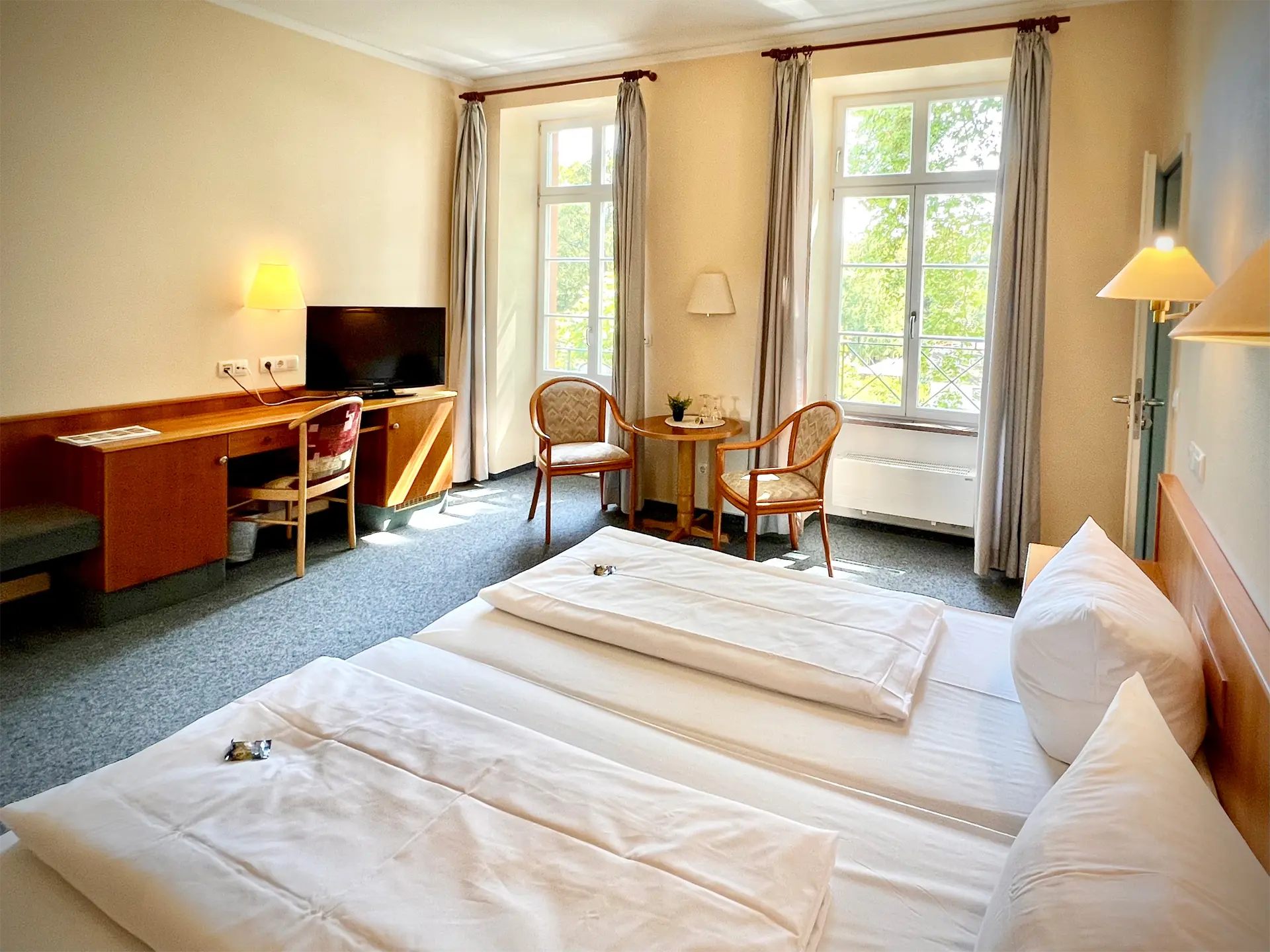Wir bieten Ihnen insgesamt 49 Zimmer, davon 25 Doppelzimmer und 24 Einzelzimmer sowie 2 große Appartements. Ebenso haben wir 6 Tagungsräume in unterschiedlichen Größen für Ihre Meetings und Workshops. Die gepflegten Zimmer stehen Ihnen in den Kategorien Klassik, Superior und Deluxe passend zu Ihren individuellen Ansprüchen zur Verfügung. Zum Abschluss können Sie in unserer Bar „Justus“ den Abend ausklingen lassen.