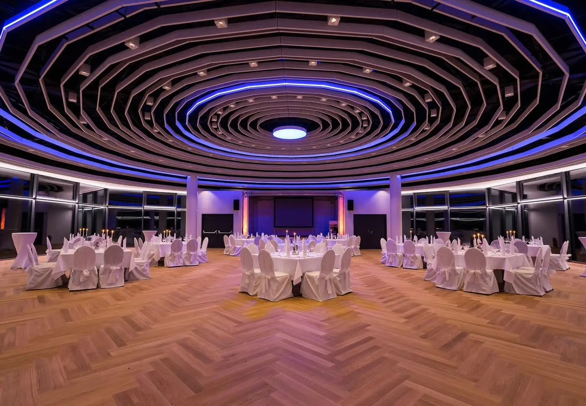Unsere Eventlocation, der große Kursaal mit 485 qm, bietet genügend Raum für größere Tagungen mit einer Vielzahl an Gästen, für unvergessliche Events, Hochzeiten, Festlichkeiten, Vorträge, Lesungen u.v.m. Je nach Wunsch für 200 bis 400 Personen.